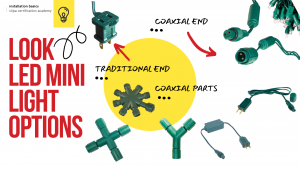 Mini lights are available in 2 different types, Coaxial and Standard. Standard plug is the good old fashioned Edison plug that can plug directly into the receptacle. We will discuss more about these two options in our Coaxial vs Traditional Lesson.
